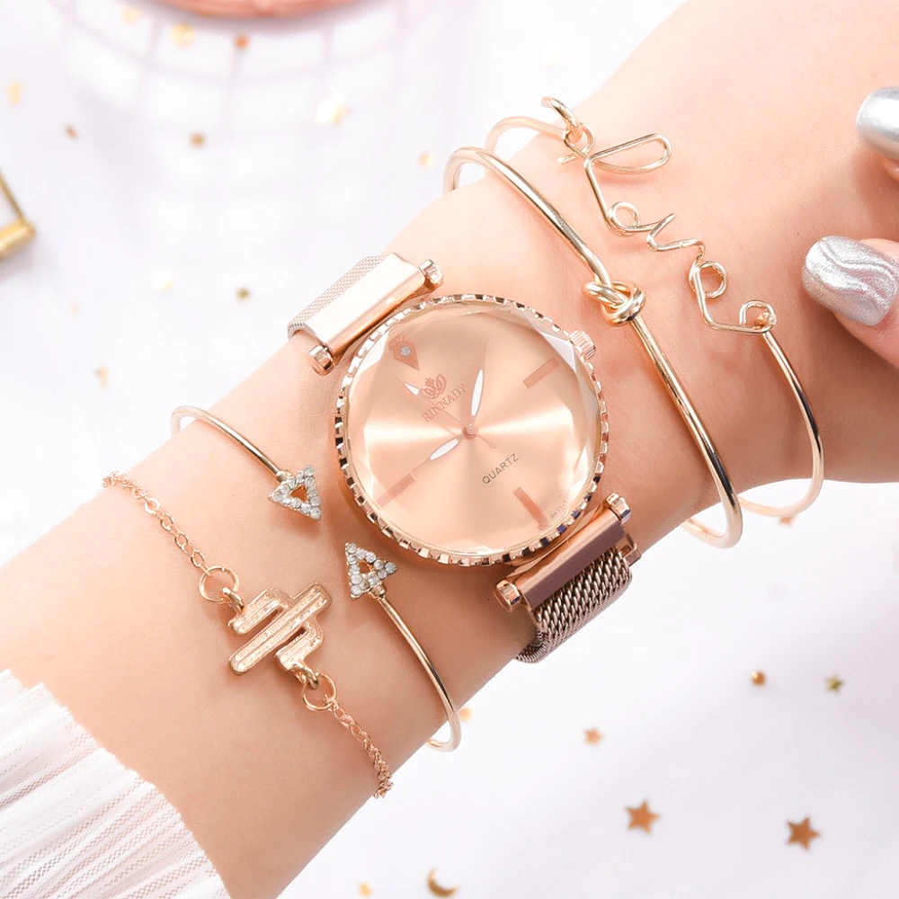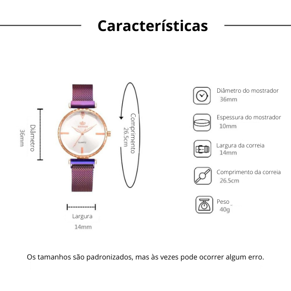 Chame a atenção por onde passar com essa combinação infalível! Com o Relógio Rose Gold e os 4 lindos Braceletes, você certamente será notada na balada. Esse conjunto é elegante, charmoso e perfeito para completar seu Look e ter aquele visual top para qualquer ocasião!